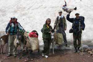 14 июля 2007 года пятеро участников нашей экспедиции - студенты и преподаватели биолого-почвеннного факультета НУУз прибыли на реку Аксаката - начальную точку нашего десятидневного маршрута. Арендовав здесь для транспортировки продуктов двух ишаков, мы отправились к слиянию рек Аксаката и Нуреката. Широкая дорога, по которой в прошлом ездили автомобили, вела нас по живописной долине реки Нуреката, поросшей плодово-ягодными деревьями. Дождь, позднее перешедший в град, заставил нас остановиться на ночлег практически перед самым подъемом на перевал Кумбель. Настоящий горный маршрут начался уже на следующий день, когда мы поднялись на перевал Кумбель (2347м) и к вечеру остановились на высокогорном перевале Тахта-Джайляу (2720 м).