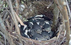 Если же вы нашли неоперившегося птенца еще с закрытыми глазами и пухом вместо перьев, то, скорее всего, он выпал из гнезда, либо его гнездо было разрушено. В первом случае необходимо вернуть птенца в гнездо, из которого он выпал. Если гнездо было разорено, можно изготовить импровизированное гнездо в виде небольшой корзинки из веток, заполненной сухой травой. Самодельное гнездо с птенцом нужно поместить на дерево, чтобы родители птицы вернулись и позаботились о ней. Большинство видов птиц имеют плохое обоняние, поэтому, если вы возьмете птенца в руки, его родители не почувствуют ваш запах и не бросят птенца.