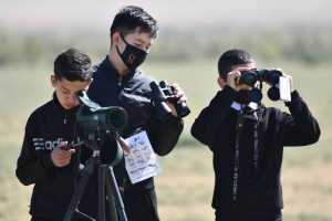 Далее руководитель проекта рассказал активным ученикам 9, 10 и 11 классов школ №20 и №35 города Нуристан и поселка Джайран, которые находятся в непосредственной близости водохранилища, о наиболее распространенных, а также редких птицах, обитающих на Талимаржане. Для проведения занятия использовались заранее подготовленные определительные таблицы водоплавающих и околоводных птиц и буклет «Кречётка - птица года в Узбекистане».